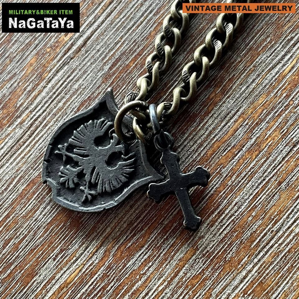 ダメージ・色褪せ・汚しなど激しい加工を施したデザインは他にはない重厚な存在感を演出します。アメカジやバイカーなど、様々なスタイルにマッチするネックレスです。