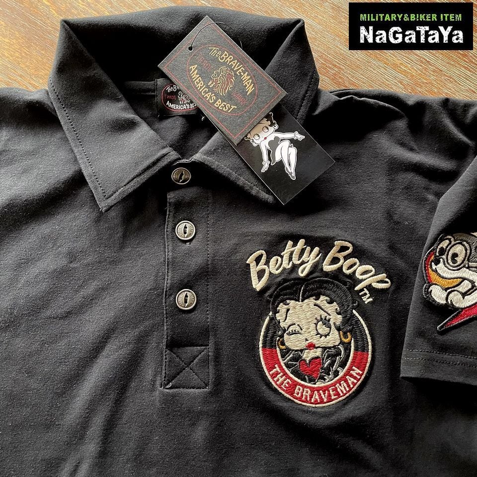 ★THE BRAVEMAN × BETTY BOOP ブレイブマン ベティブープコラボ ロゴ刺繍 ベア天竺 バイカー半袖ポロシャツ メンズ BBB-2422