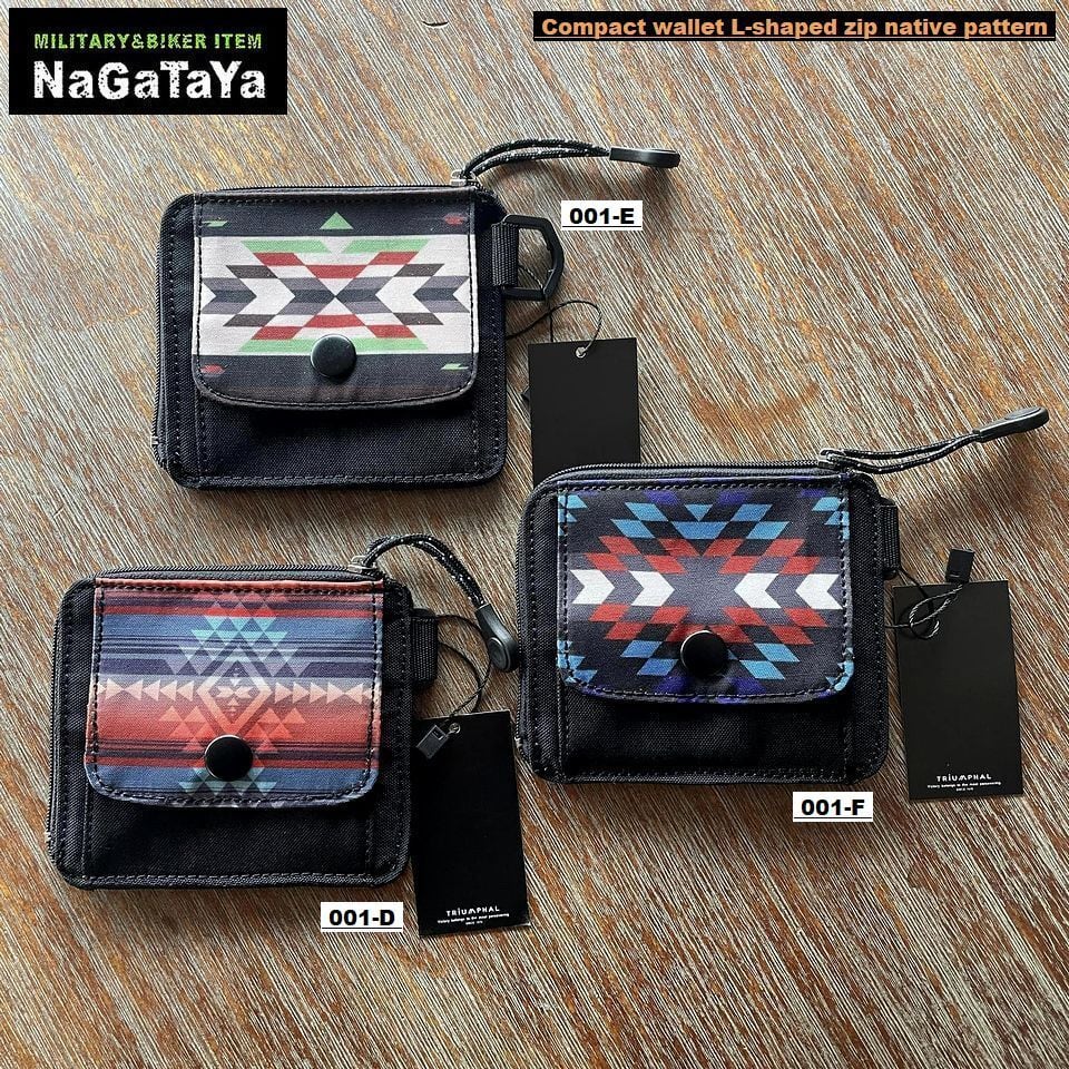 ★ネイティブパターン コンパクト ウォレット L字ジップタイプ D型フックリング付き メンズ レディース (画像内のウォレットロープは別売りです)