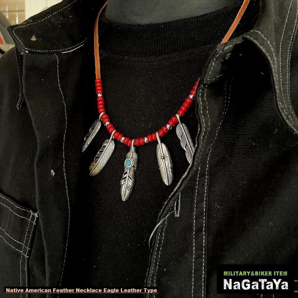 ■ネイティブアメリカン フェザーネックレス レザータイプ ビーズ飾り エンド仕様 INJ037 アクセサリー メンズ