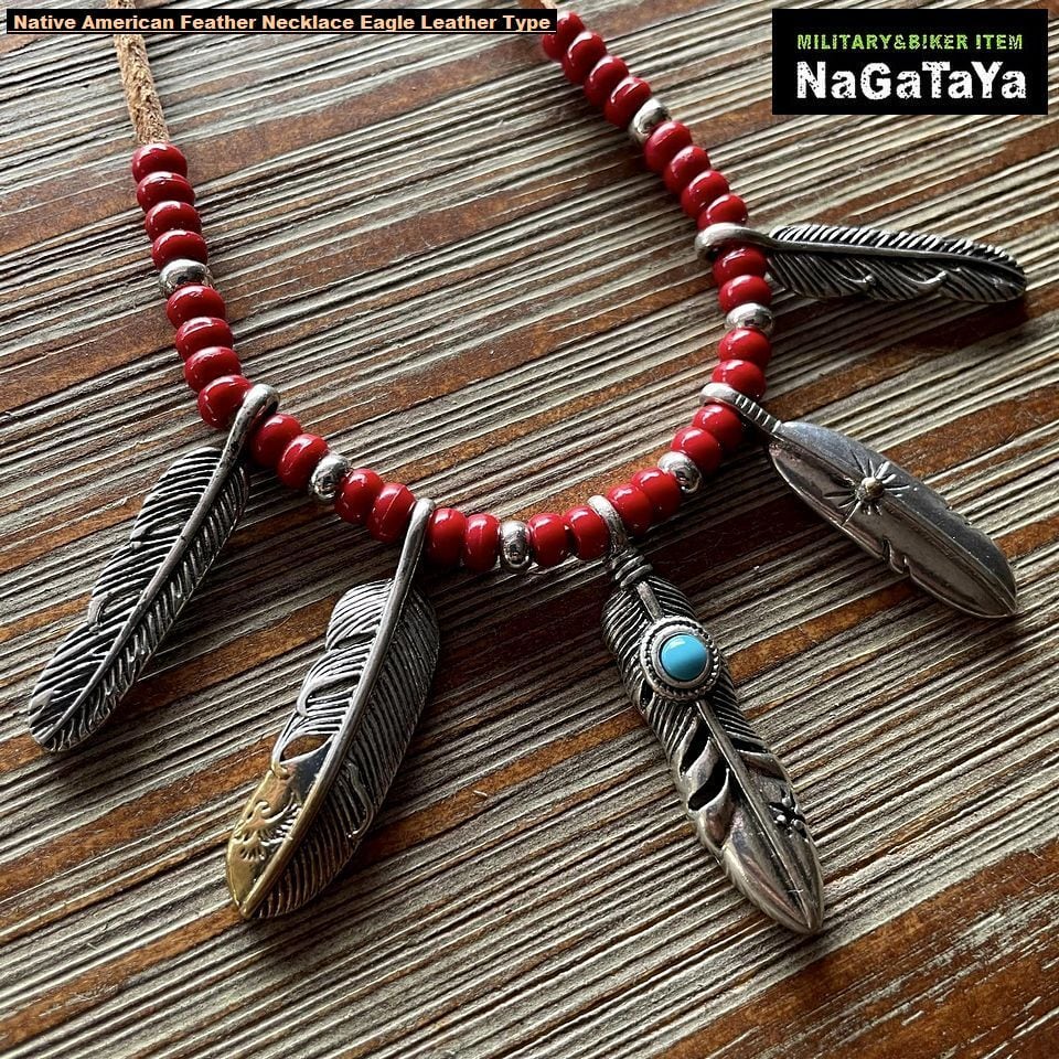 ネイティブアメリカン フェザーネックレス レザータイプ ビーズ飾り エンド仕様 INJ037 アクセサリー メンズ