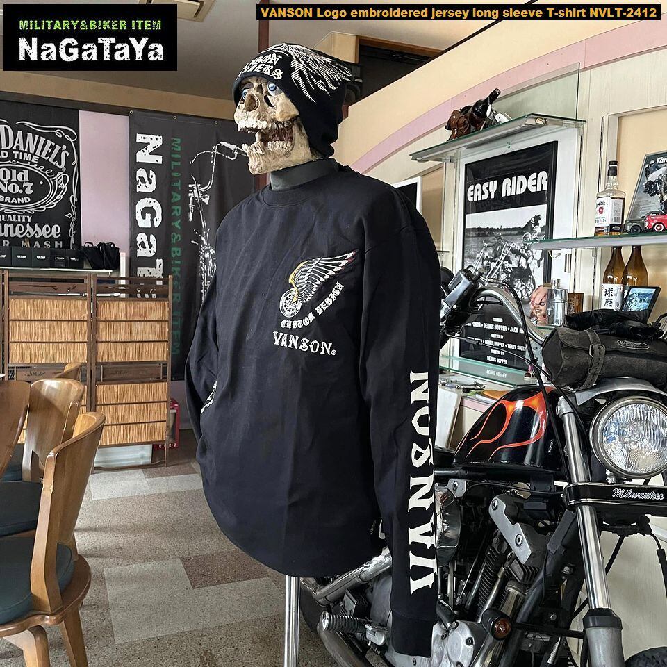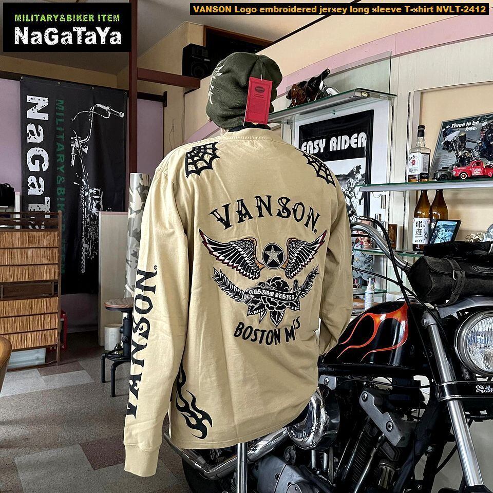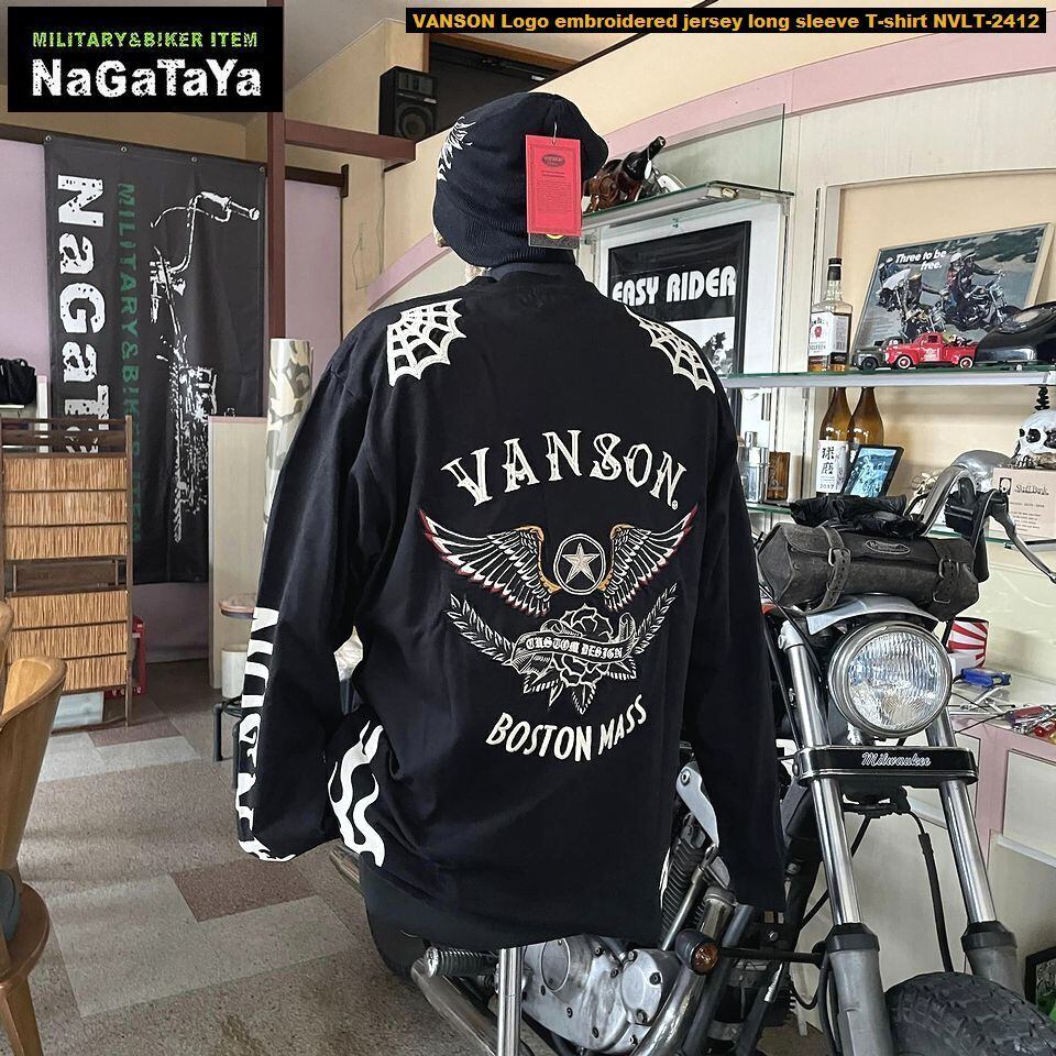 ☆VANSON バンソン ロゴ刺繍 天竺 長袖Tシャツ スパイダー バイカーロングスリーブTシャツ メンズ NVLT-2412 BIKE バイカーウエア