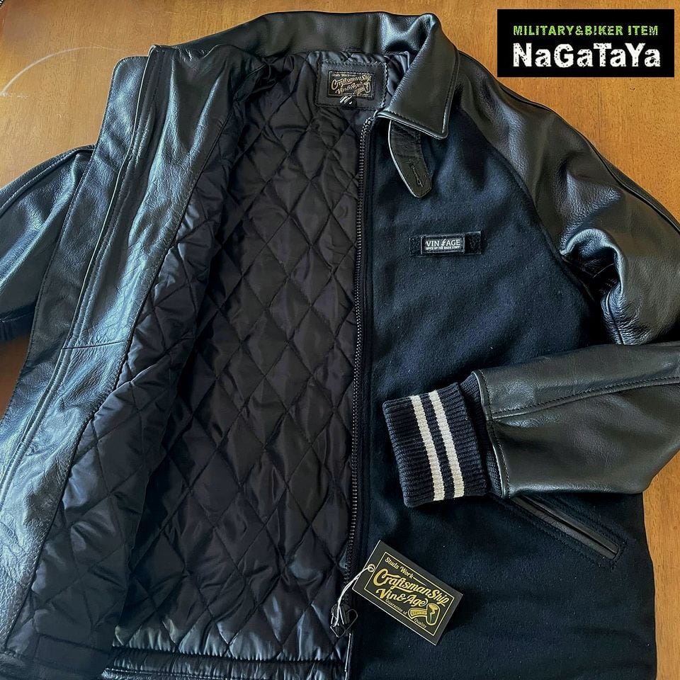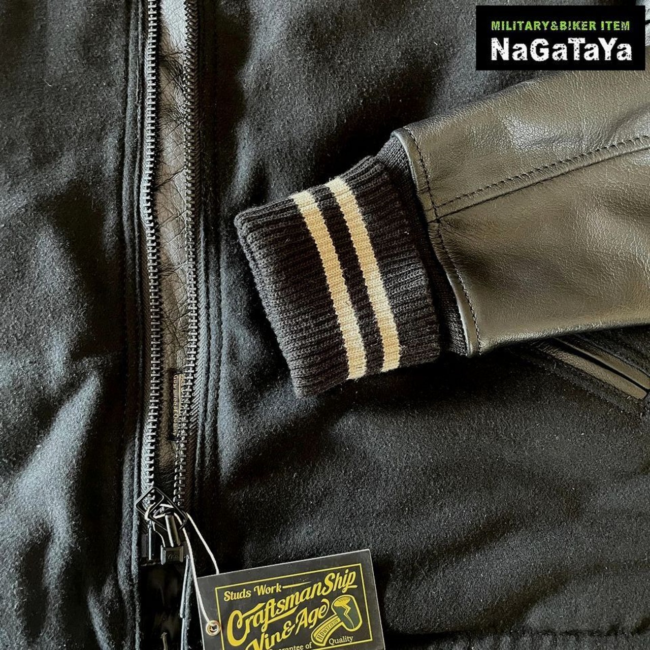 ■メルトン×牛革(袖)のジップアップファラオジャケットです。 ベーシック(オールドスクール)なルックスに着心地を考慮した身幅広めのリラックスシルエット。 胸や背中に刺繍やプリントを施せるように裾全体にファスナーを装備。 中綿には、保温性に優れたシンサレートを採用。