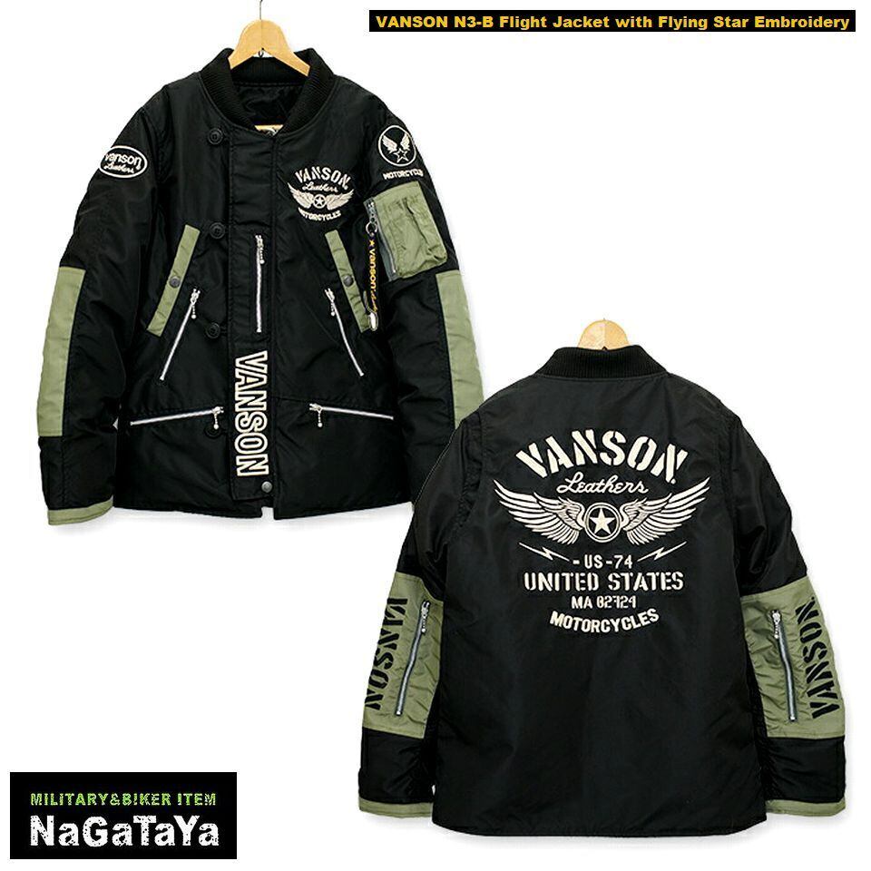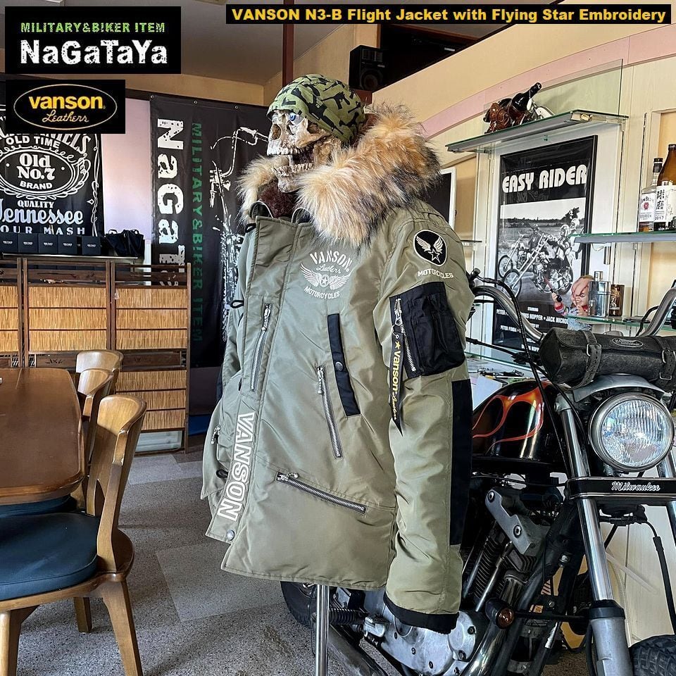 ★VANSON バンソン フライングスター刺繍 中綿 N3-B フライトジャケット フード脱着式 NVJK-2403 アウター メンズ
