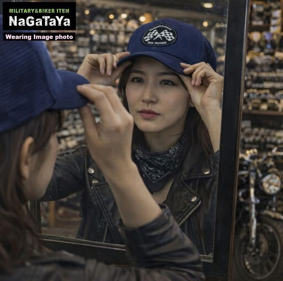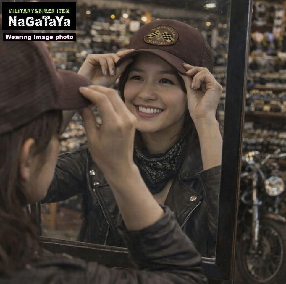■70年代のチェッカーフラッグをサンプリングしたワッペンをVin&AgeオリジナルボディにONしたトラッカーメッシュキャップ。ビンテージバイク乗りには、必須のアイテムです。通気性の良いメッシュ素材を使用しているため、快適な被り心地です。